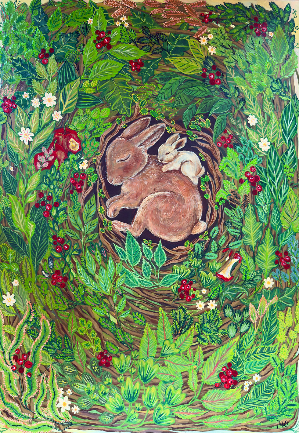 In ihrer Malerei verbindet sie persönliche Erfahrungen mit Themen wie Freundschaft, Liebe, Selbstfindung und innerem Wachstum.